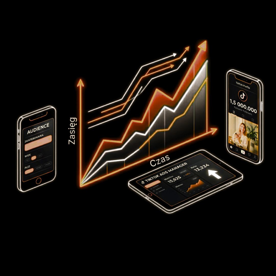 Skuteczność mierzymy za pomocą panelu TikTok Ads Manager zintegrowanego z Twoim sklepem. Raportujemy nie tylko liczbę wyświetleń i kliknięć, ale przede wszystkim liczbę transakcji, wartość sprzedaży oraz koszt pozyskania jednego zamówienia, co pozwala na precyzyjne wyliczenie rentowności działań.